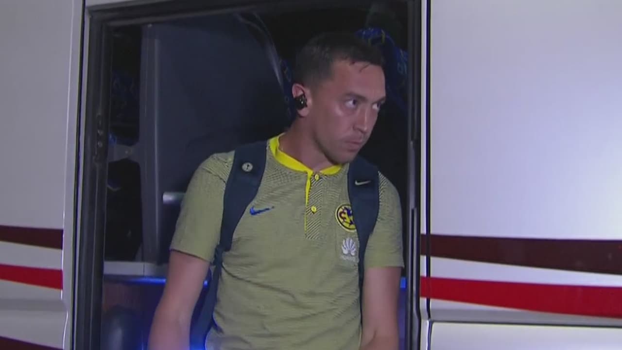 Se encienden los motores para el primer partido en Torreón entre el América y los Laguneros. Con rostros de concentración y algunos con audífonos, aquí la llegada del club azulcrema.