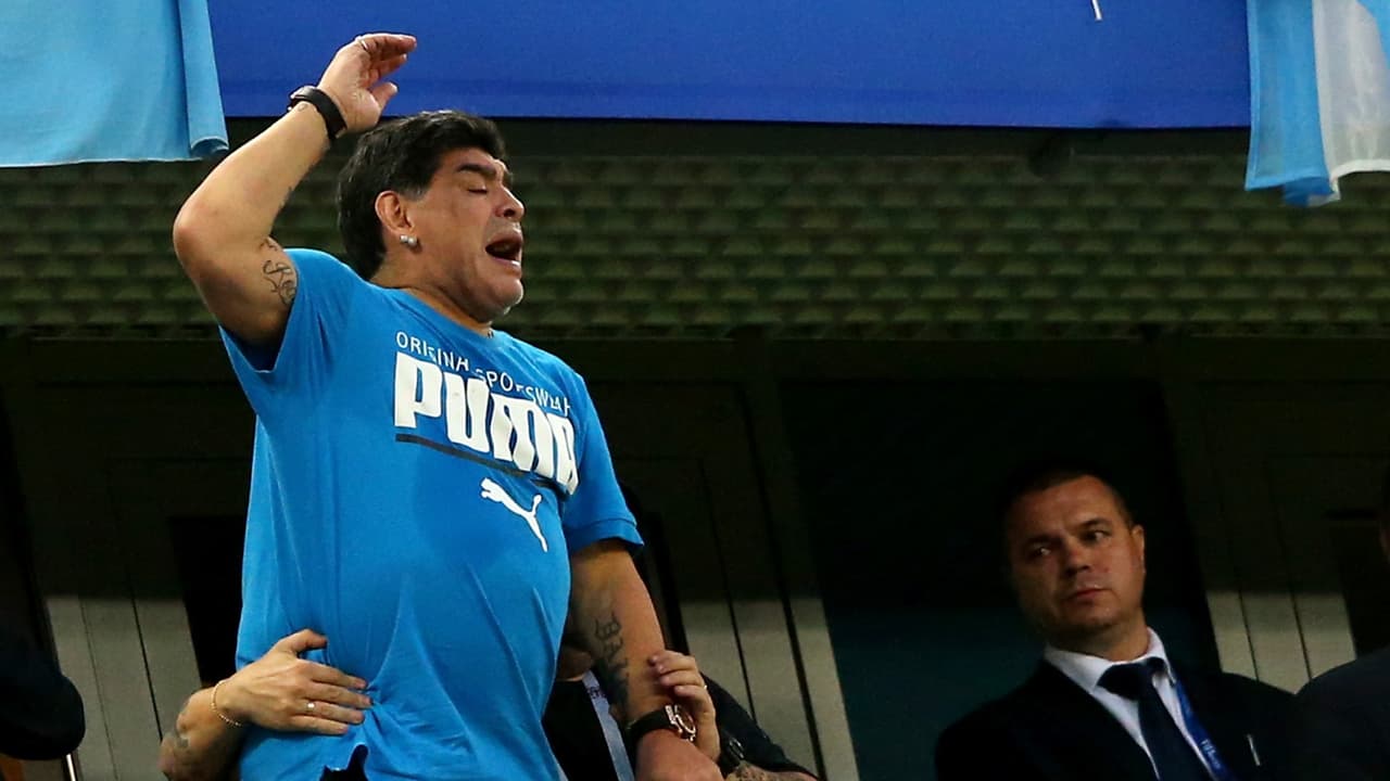 Tras la supuesta descompensación que sufrió después del partido entre Argentina y Nigeria, el exfutbolista siguió su itinerario en el Mundial Rusia 2018.