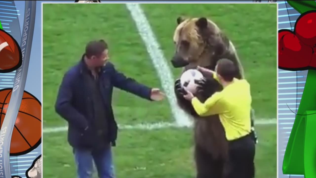 ¡Increíble! Un oso es el encargado de entregarle el balón al árbitro en el fútbol de Rusia
