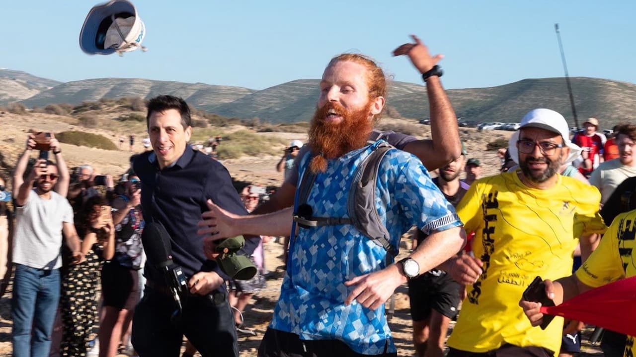 En este tramo final, el joven de 27 años fue acompañado por decenas de seguidores, tunecinos pero también llegados de Reino Unido, Canadá y Australia, que recorrieron los últimos kilómetros, algunos ataviados con una falsa barba rojiza para imitar a su ídolo. Como Joshua, originario de Gales, que visita el país magrebí por primera vez y ha logrado su propio récord personal, 13 kilómetros, para "vivir este acontecimiento histórico".