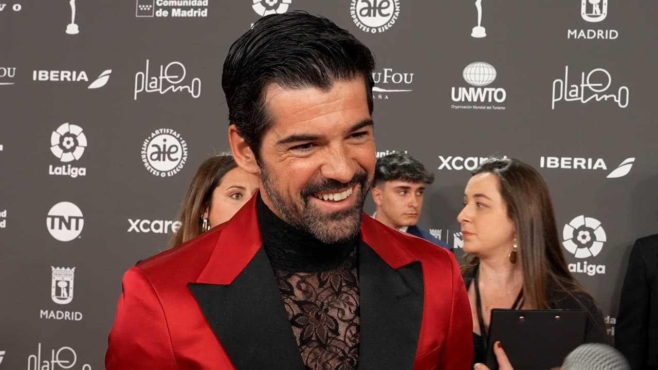 Platicamos con Miguel Ángel Muñoz en la alfombra roja de los Premios Platino, donde llego con un atuendo muy sensual.