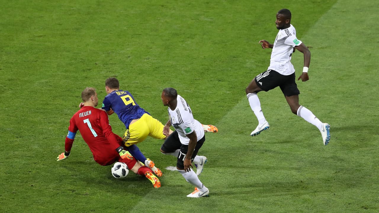 El encuentro entre Suecia y Alemania, que se fue al descanso con 1-0 a favor de los escandinavos, pudo haber tenido otro gol en el marcador si una dudosa acción de Boateng sobre Berg.