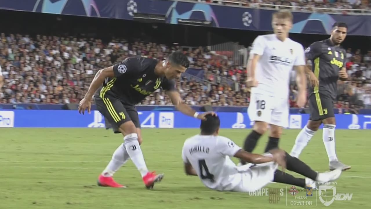 El astro portugués no quedará con un grato recuerdo de su estreno con la Juventus en Liga de Campeones de Europa, luego de ver la roja directa y ser expulsado por agresión en el juego ante Valencia.