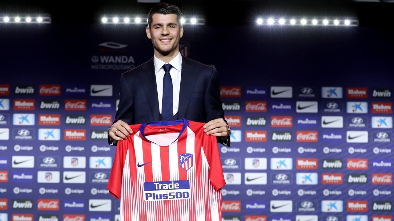 En una sala abarrotada por los medios de comunicación, le entregaron al delantero de 26 años la camiseta rojiblanca con el número 22. Morata podría debutar este domingo ante Betis.