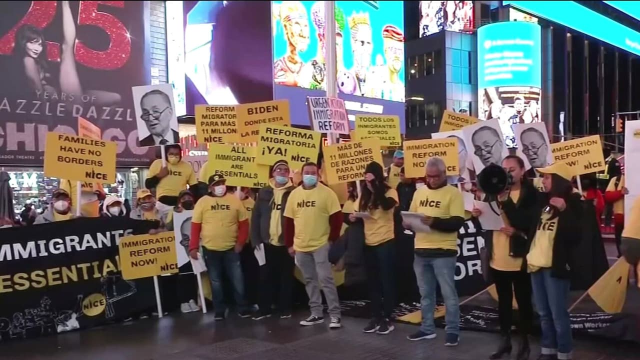 Decenas de personas se congregaron en Times Square, Nueva York, para presionar al Congreso y que apruebe la prometida reforma migratoria. Los manifestantes aseguraron que protestarán por 11 días en ese mismo lugar y la última jornada marcharán hasta llegar a la casa del senador Chuck Schumer.