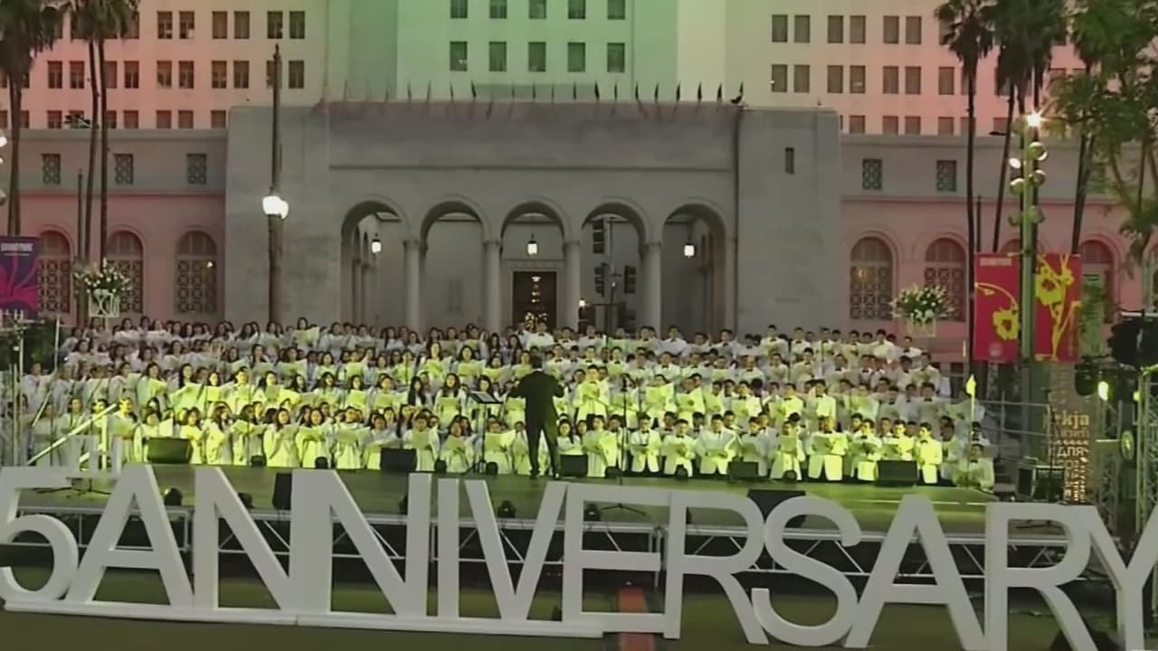 Cientos de feligreses de esta comunidad se dieron cita en el centro de Los Ángeles y participaron en un concierto organizado, según ellos, para celebrar los esfuerzos humanitarios que han realizado en las áreas de la educación y religión durante los años en los que su líder, quien está en prisión por presuntos delitos sexuales contra menores de edad, asumió la dirección de la congregación.