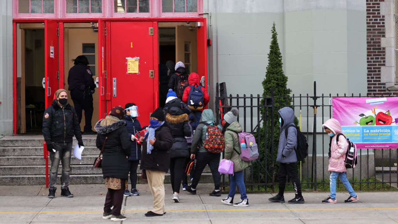 El alcalde Bill De Blasio recibió a un grupo de niños para alentarlos en el primer día de retorno a clases presenciales. Algunos padres de familia protestaron y rechazaron la medida, al considerar que es un gran riesgo volver a las escuelas en medio de la crisis por el coronavirus. Señalan que no se sienten seguros de enviar a sus hijos a los planteles. Un estudio indica que los estudiantes que permanecen en aprendizaje remoto están más atrasados.