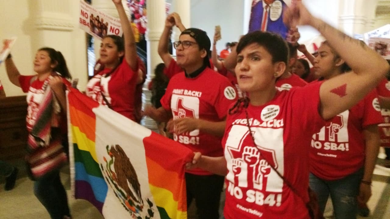 La resistencia contra la ley antiinmigrante de Texas que prohíbe las ciudades santuario continúa. La manifestación se realiza tras forcejeos y amenazas entre legisladores de ambos partidos y un llamado a la migra para que se llevara a los manifestantes.