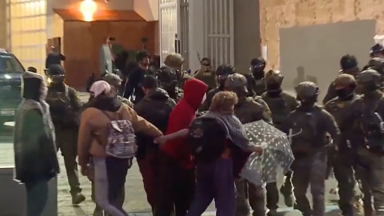 En Portland, Oregon, la cuarta noche de protestas contra el despliegue de la Guardia Nacional ordenado por el presidente Trump terminó en caos frente a un centro de ICE. En video quedó registrado el momento en que agentes federales se enfrentan a manifestantes. Cuatro personas fueron arrestadas.