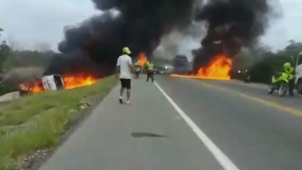Decenas de pobladores se aglomeraron alrededor del camión cisterna tras el accidente para robar la gasolina que transportaba, pero a los pocos minutos se registró una explosión. Hasta el momento se reportan al menos 60 personas heridas. Se habla de dos hipótesis sobre el estallido: la falla mecánica que causó el siniestro y una chispa generada tras intentar quitar la batería del vehículo.