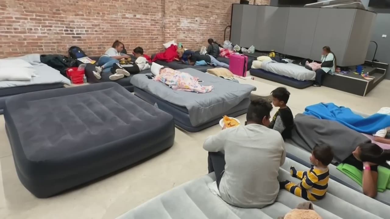 Refugios instalados en una bodega y una iglesia ahora reciben a algunos de los migrantes que permanecían resguardados en estaciones de policía, incluso con niños. Estos lugares han sido habilitados sin ayuda ni fondos de la ciudad, que ha sido declarada en estado de emergencia por la cantidad de personas que siguen llegando.