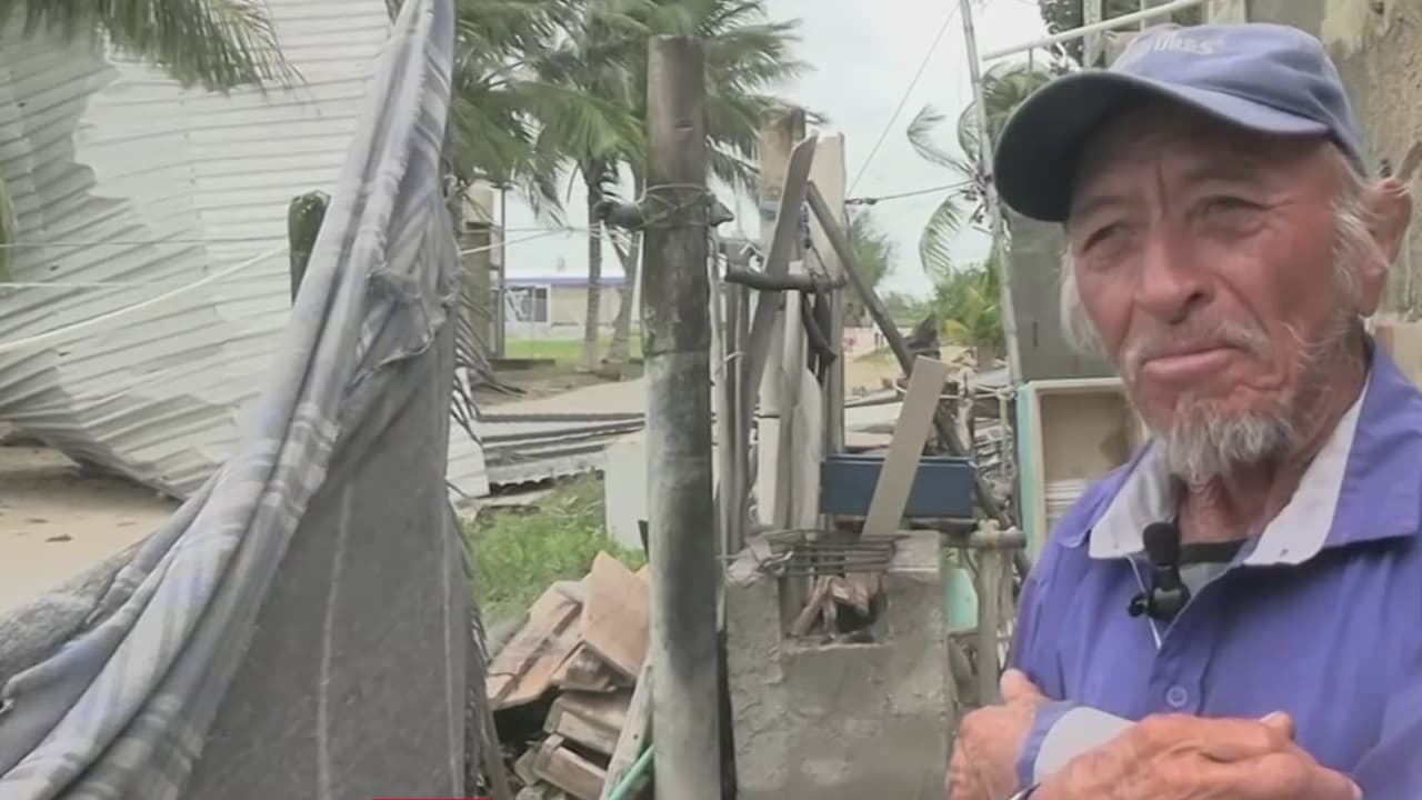 Roberto López, un pescador de 79 años, vive en la zona costera de Sisal, Yucatán, donde se sintió el azote del huracán Milton en México. Este anciano cuenta que los fuertes vientos derribaron el techo de su vivienda y se llevaron las herramientas con las que sale a navegar para conseguir el pescado que vende para subsistir.