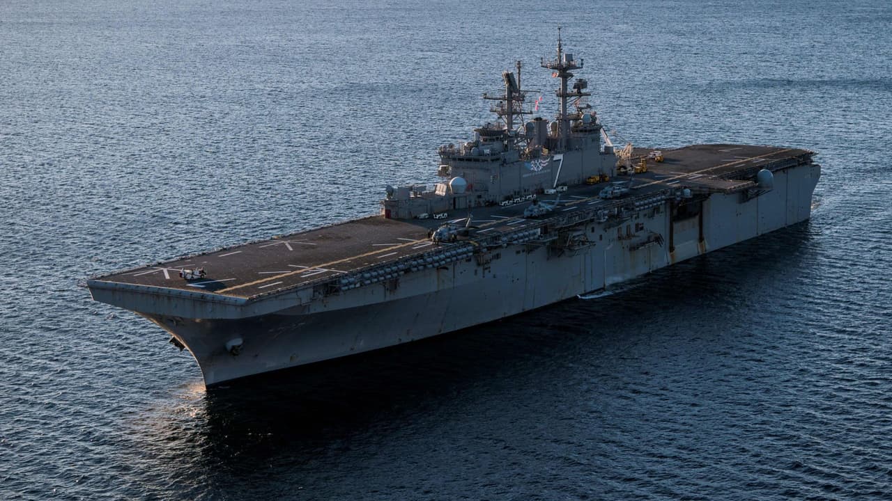 En medio de la creciente tensión entre Estados Unidos y Venezuela, el secretario de Defensa, Pete Hegseth, viajó a Puerto Rico a supervisar una de las flotas desplegadas en el Caribe. Te mostramos cómo es el buque de asalto anfibio USS Iwo Jima, una auténtica base militar flotante con casi 2,000 infantes de Marina.