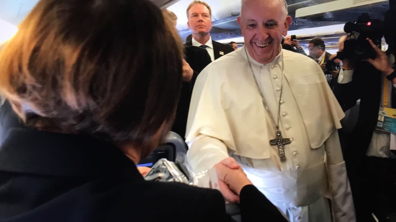 Así fue el encuentro de María Antonieta Collins con el Papa Francisco en el avión papal