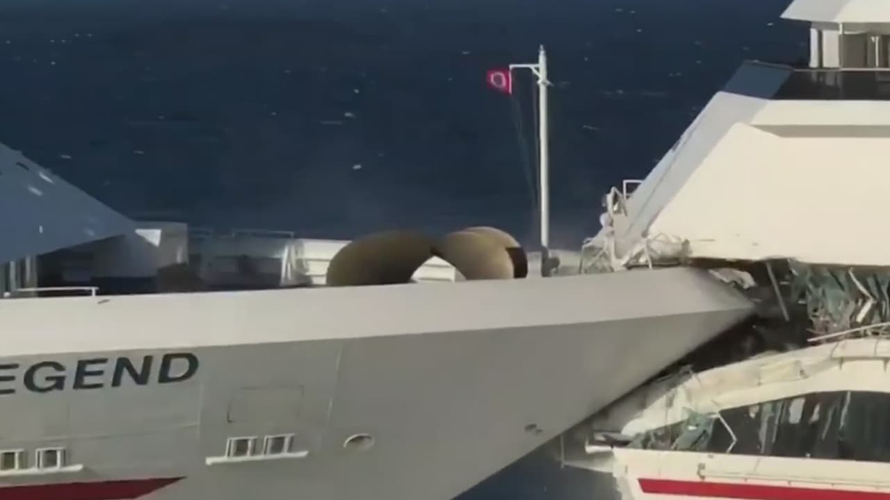 Así quedó el barco crucero que fue impactado por otro en un puerto de México