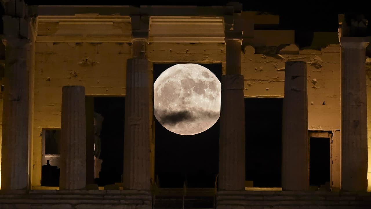 El emblemático Partenón de la Acrópolis, en Atenas, se vio iluminado por la tercera superluna de este año. El fenómeno, en el que se ve al satélite natural un 14% más grande y hasta un 30% más brillante que lo usual, se deba a que este se encuentra en su punto más cercano con la Tierra.