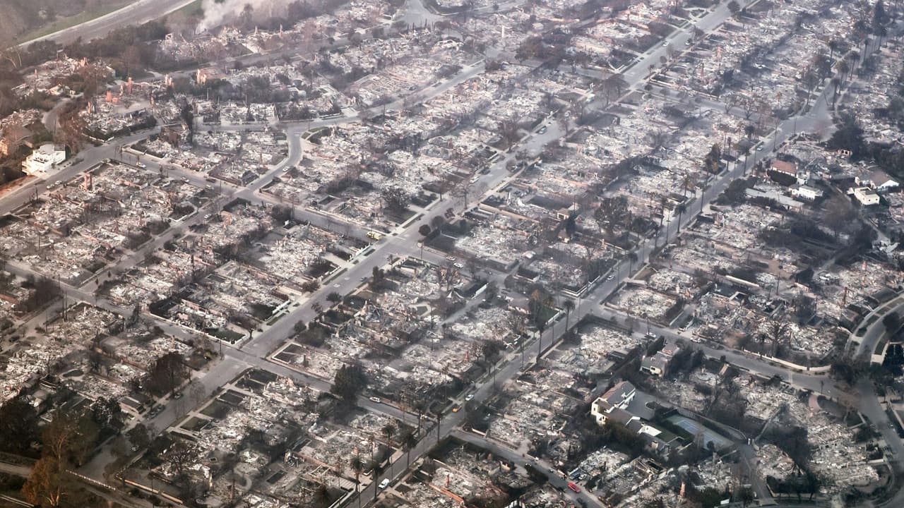 Así se ve desde el cielo la magnitud de la devastación causada por los incendios en Pacific Palisades