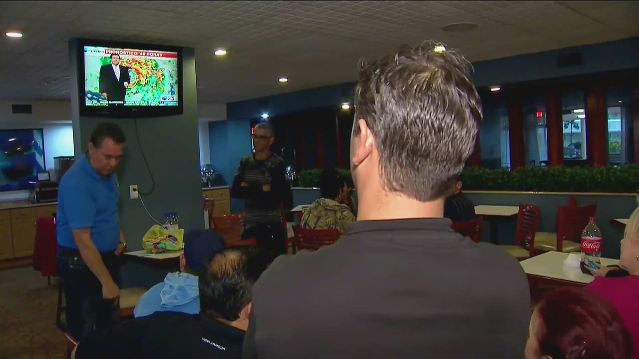 Algunos intentan distraerse con celulares o juegos de mesa, mientras que otros prefieren seguir la transmisión continua de Univision para saber sobre la trayectoria del ciclón y los cambio que pueda presentar.