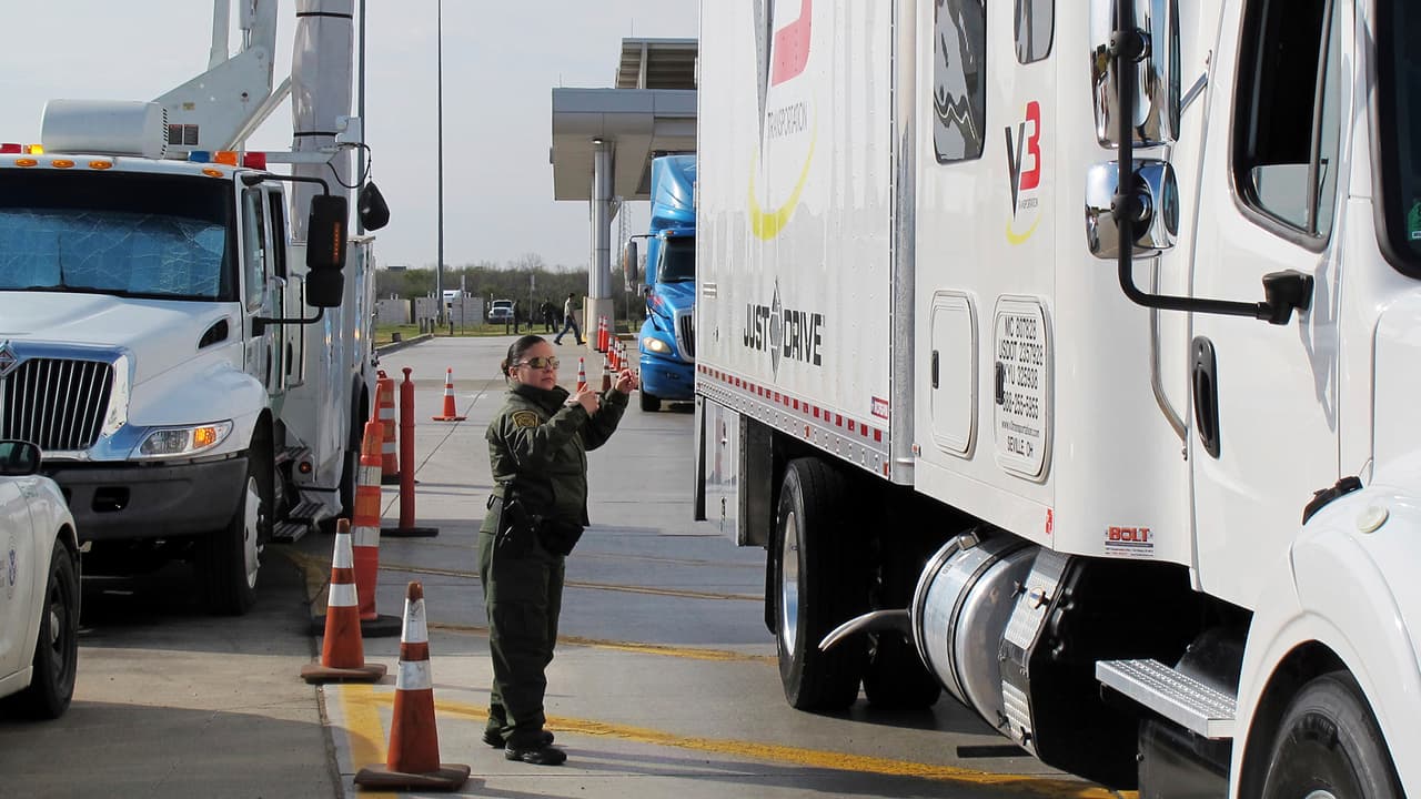 El equipo de Univision presenció el hallazgo de dos indocumentados ocultos en el techo de una cabina de carga en la garita de inspección de la Patrulla Fronteriza al norte de Laredo, Texas. El equipo de rayos X es utilizado para evitar el tráfico humano y de narcóticos.