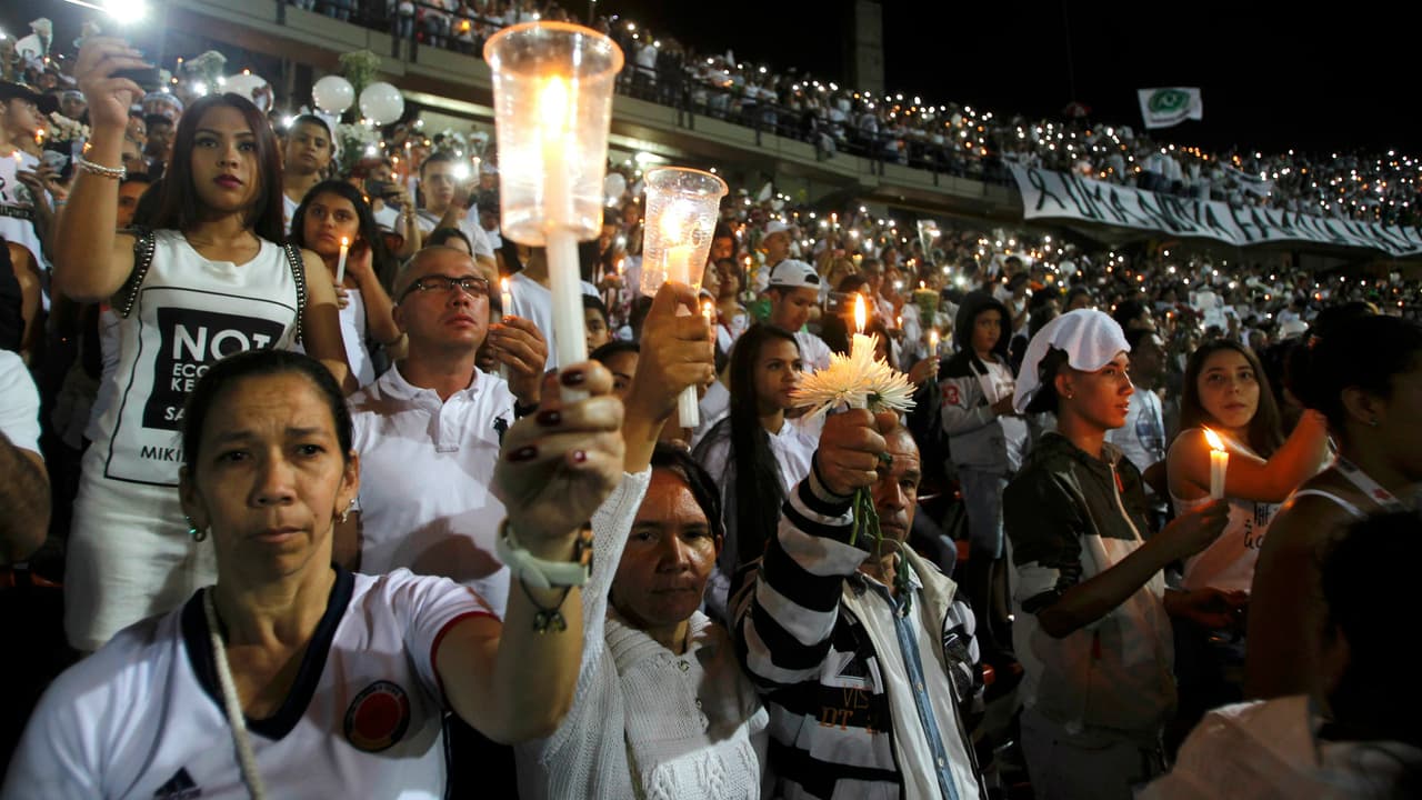 Miles de personas vestidas de blanco colmaron la edificación paradójicamente no para ver un partido de fútbol, sino para rendir tributo póstumo a los jugadores, periodistas, directivos y tripulantes que viajaban en la aeronave siniestrada.