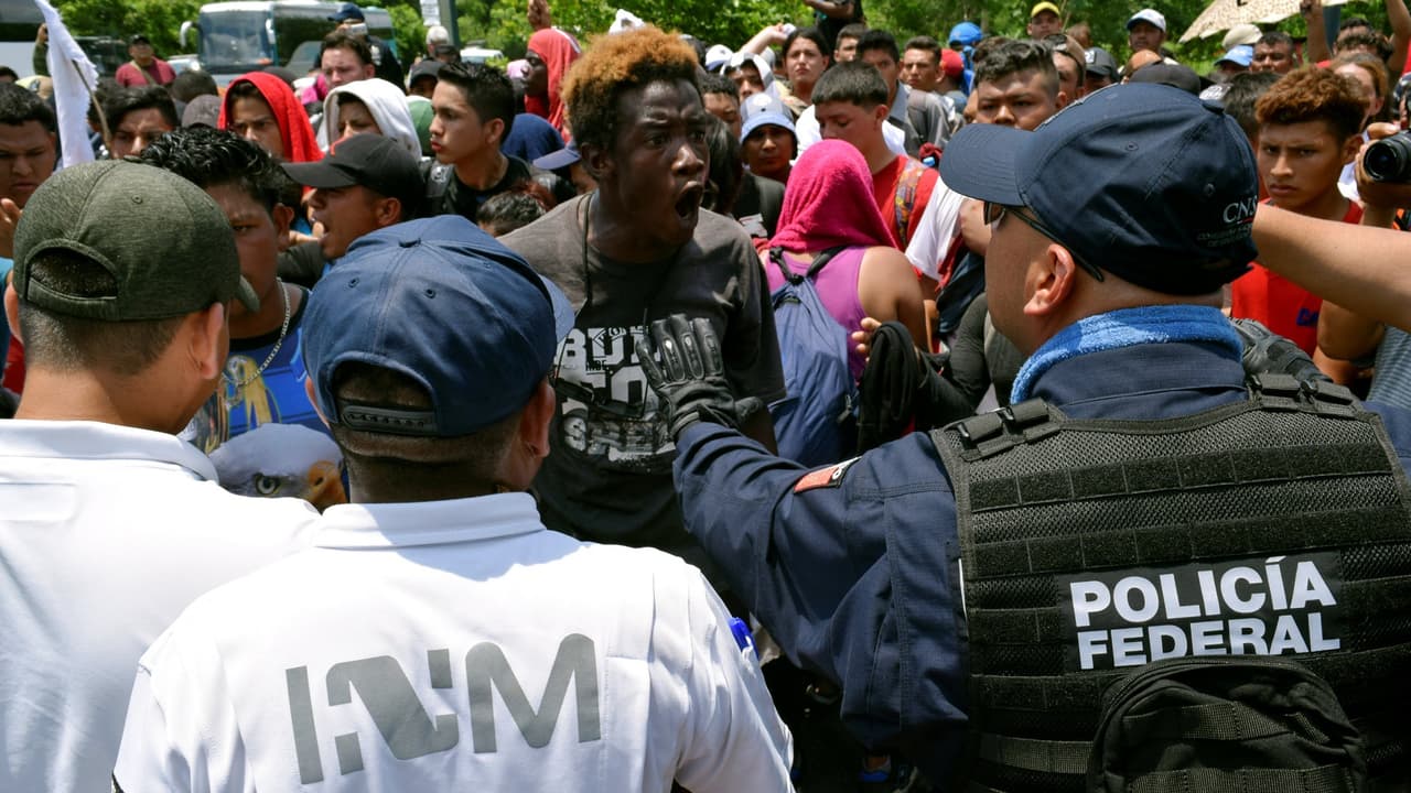 Autoridades migratorias mexicanas frenan paso de caravana de migrantes centroamericanos en Chiapas