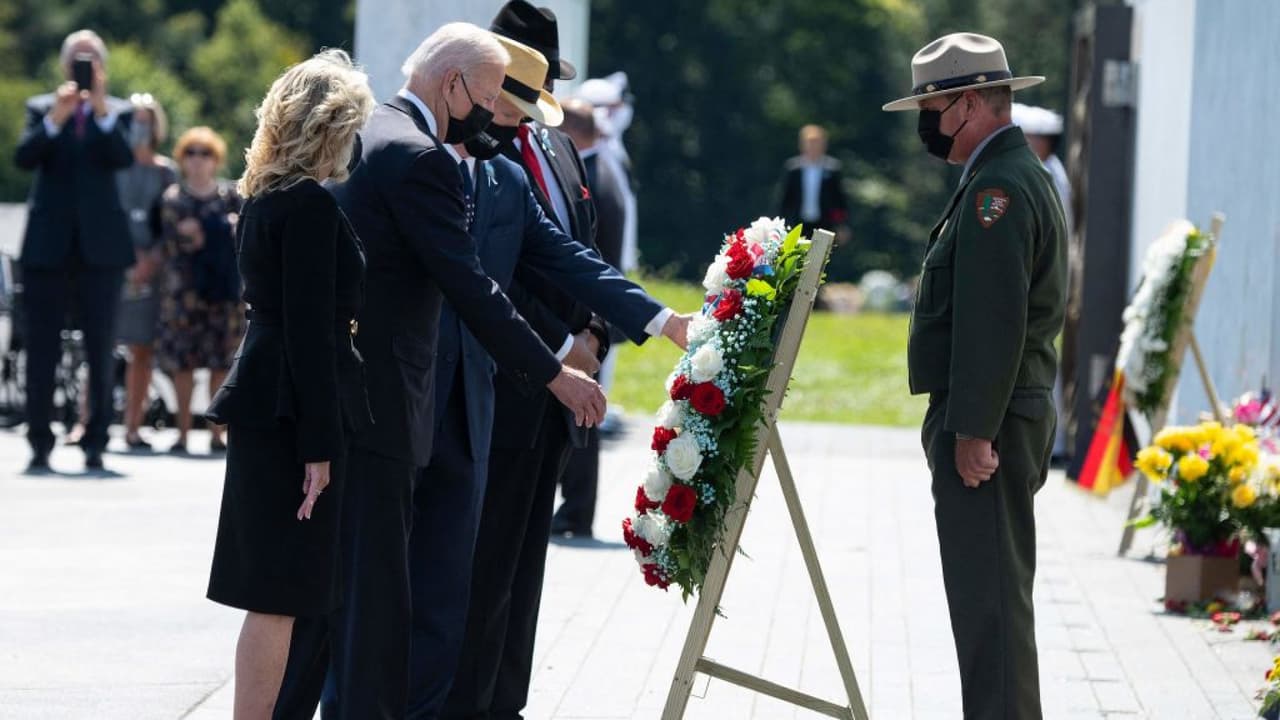 El presidente Joe Biden y la primera dama, Jill Biden, llegaron a Shanksville, Pennsylvania, donde se reunieron con familiares de las víctimas del vuelo 93 de United Airlines y visitaron la roca que marca el sitio exacto en el que impactó el avión, uno de los cuatro que fueron secuestrados por terroristas el 11 de septiembre de 2001.