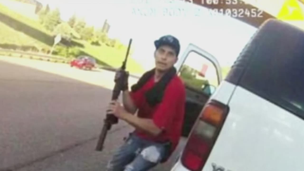 El video muestra que el oficial se detiene después de ver una camioneta estacionada en un lado de la carretera. El conductor del vehículo lo sorprende con un arma.
