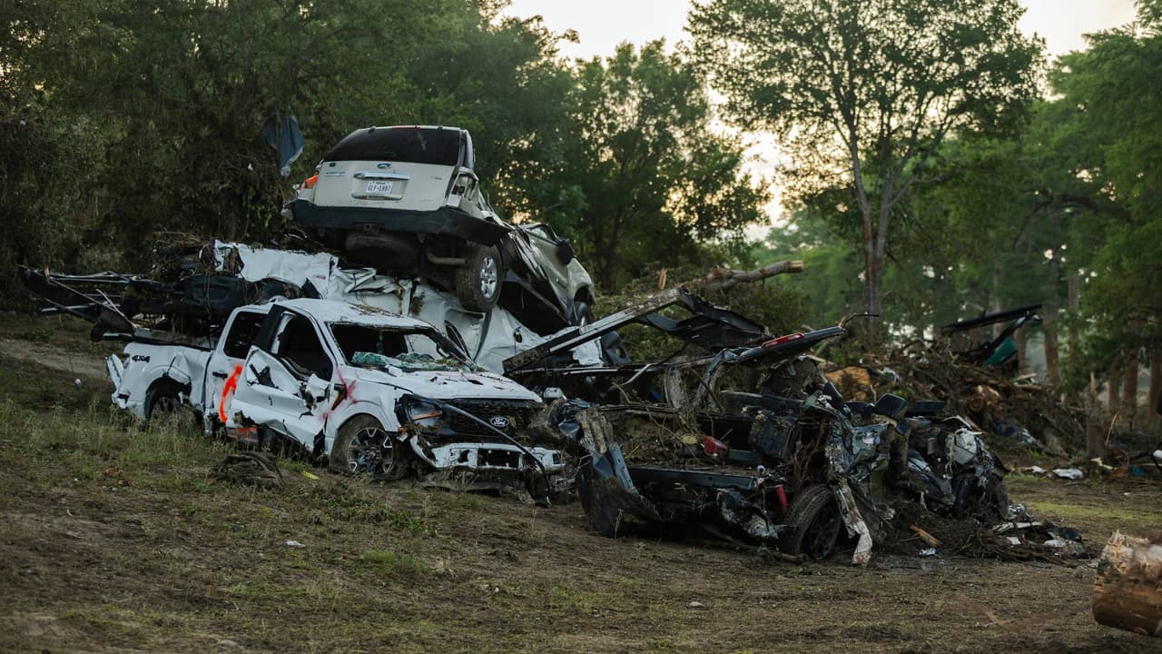 Casas arrasadas, autos convertidos en chatarra y calles cubiertas de escombros son parte del panorama en Hunt, Texas, tras el desbordamiento del río Guadalupe. Tras varios días de la tragedia, continúan las labores de búsqueda, mientras los vecinos se unen para limpiar y sobrevivir en medio de la devastación.
