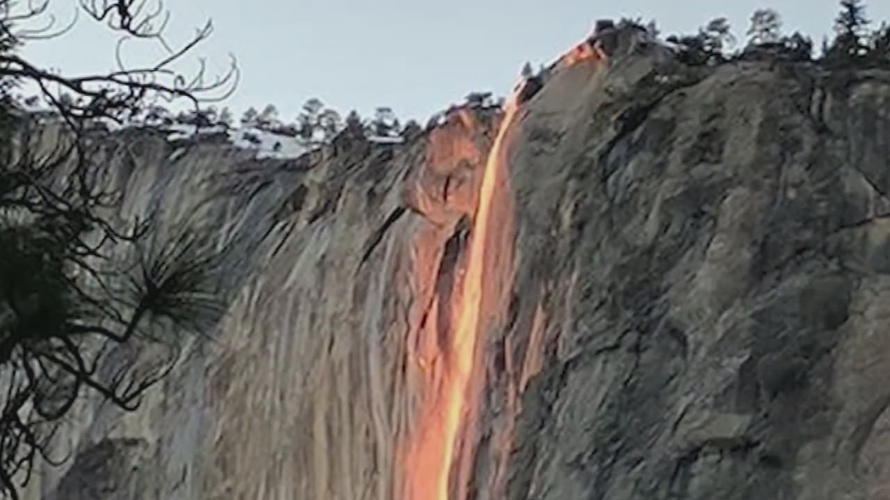 Cascada de agua parece convertirse en fuego en el Parque Nacional de Yosemite, California