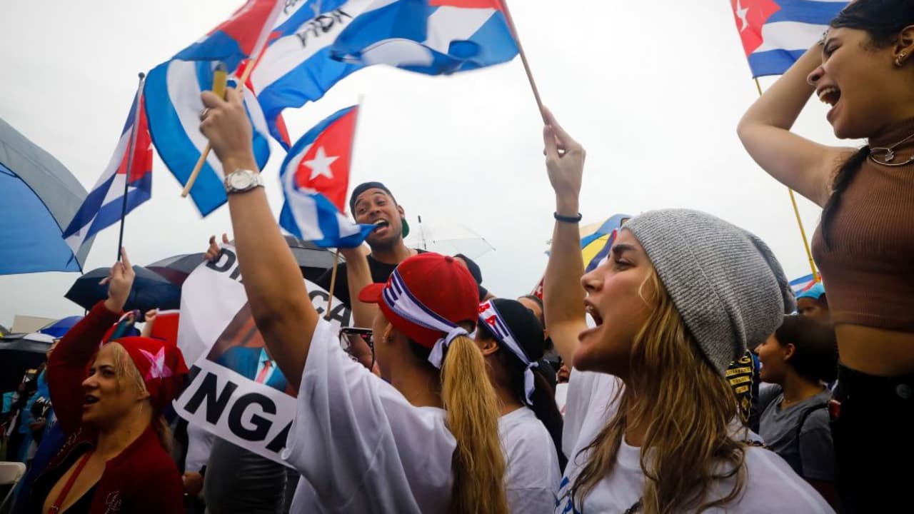Los exiliados cubanos en Miami se reunieron en el monumento llamado 'Memorial Cubano', donde están los nombres de los opositores que murieron luchando en contra del régimen de los hermanos Castro. Los manifestantes piden que se realice una intervención militar en la isla para garantizar la vida de quienes se encuentran protestando.