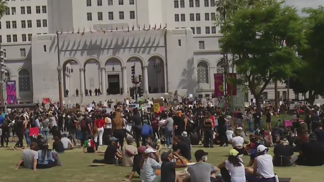 Cientos de manifestantes se reúnen en el centro de Los Ángeles y exigen un "juicio justo" en el caso de George Floyd