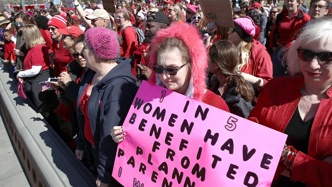 Vestidas de rojo, cientos de mujeres tomaron las calles de Nueva York y de decenas de ciudades en todo el país para protestar por la igualdad salarial y reivindicar sus derechos en el marco del Día Internacional de la Mujer.