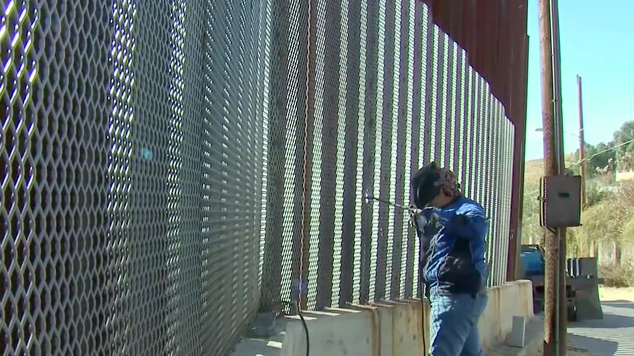 Colocan una tela metálica en el muro fronterizo para impedir que las personas intercambien productos