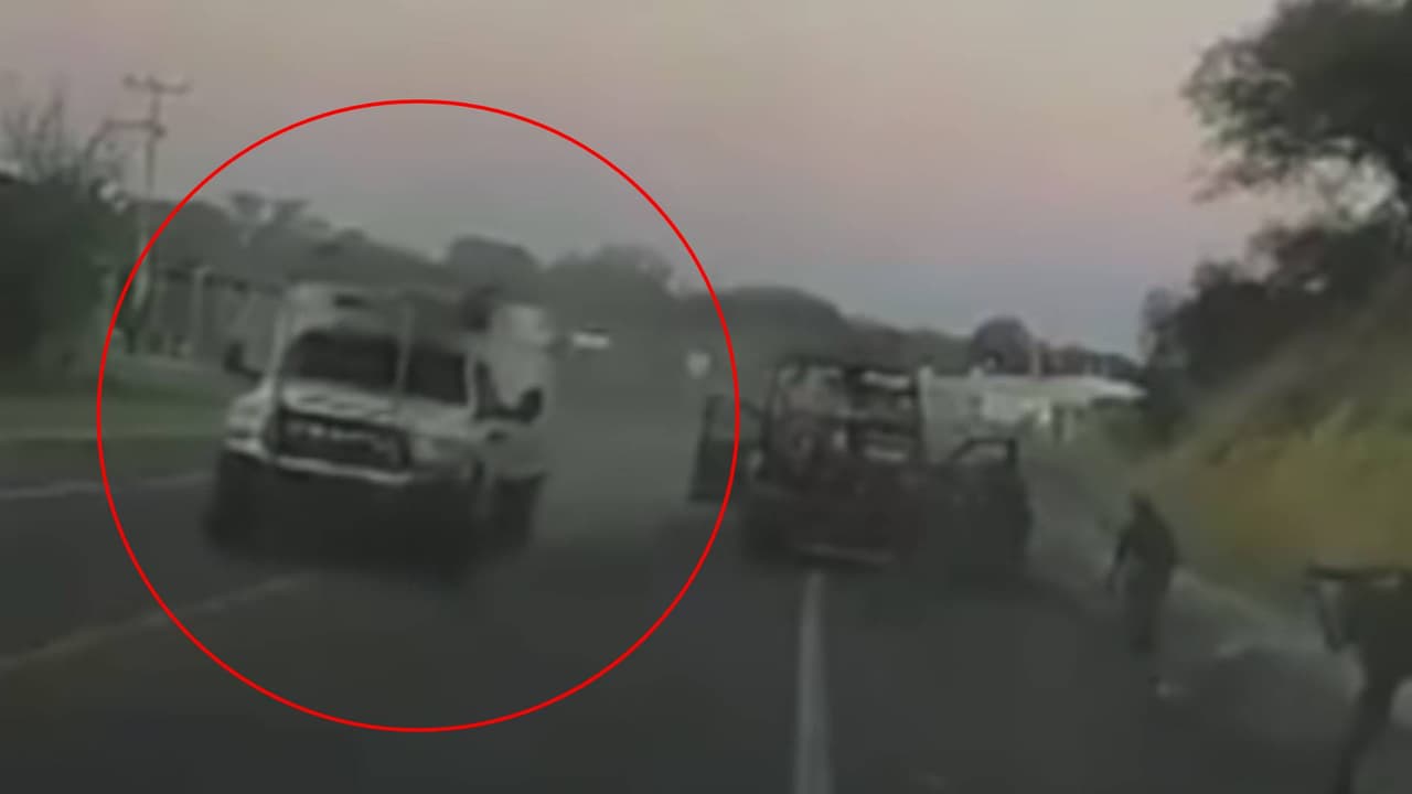 En un video que circula en redes sociales se ve el momento en que una camioneta llena de hombres armados dispara contra una unidad militar que estaba sobre una carretera en Jalisco. El incidente, que es atribuido al Cártel Jalisco Nueva Generación, cobró la vida de tres uniformados.
