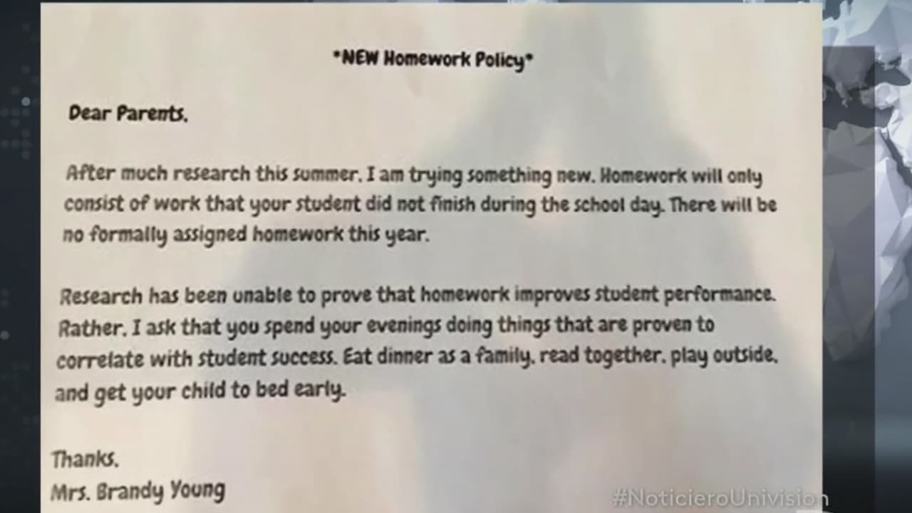 Luego de que una maestra en Texas enviara una carta explicando que no mandaría tareas en su clase, el debate se encendió a nivel nacional. La profesora alega que los trabajos fuera de la escuela no parecen ser muy útiles para los estudiante.