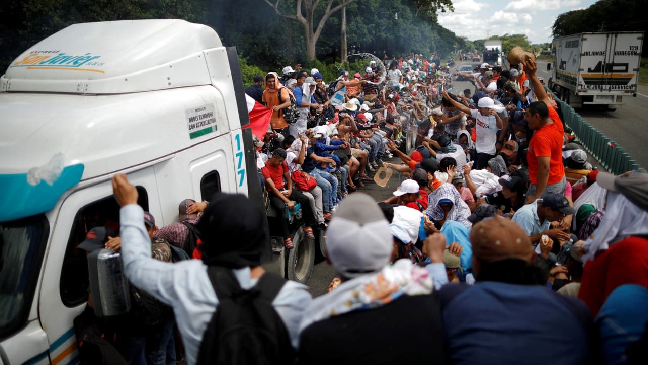 Desafiando el intenso calor, las distancias, las amenazas de la administración Trump y sin el apoyo de las autoridades mexicanas, miles de migrantes avanzan por el estado de Chiapas para llegar a la frontera con EEUU. Los integrantes de la caravana aseguran que huyen de la violencia y la pobreza en sus países, y piden que los dejen continuar su recorrido sin mayores obstáculos ya que lo único que buscan es un mejor futuro.