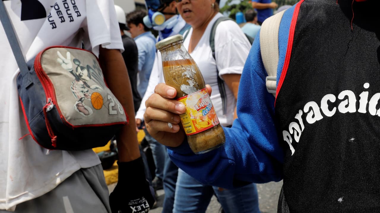 Con bombas de excremento, los manifestantes venezolanos se defienden de la Guardia Nacional
