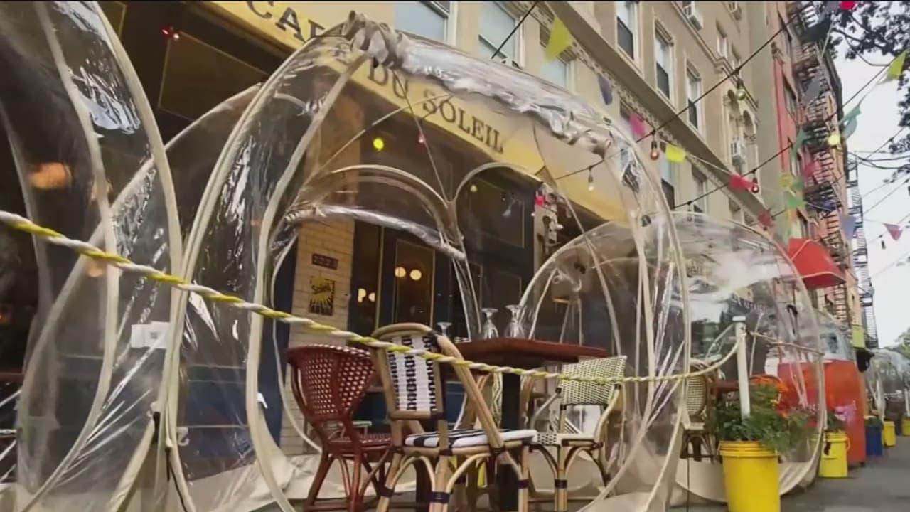 El Café Du Soleil instaló 16 de estas burbujas frente al establecimiento, cada una de ellas costó cerca de 400 dólares, a su interior las temperaturas aumentan hasta 10 grados, siendo de gran utilidad para combatir la inclemencias del tiempo y mantener el distanciamiento social entre los clientes en tiempos de coronavirus. La innovadora medida ha despertado el interés de un gran número de neoyorquinos.