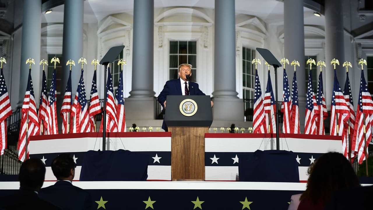 El mandatario dio su discurso en el jardín de la Casa Blanca frente a casi 1,500 personas, que no se tomaron exámenes de coronavirus ni mantuvieron el distanciamiento social. Trump también resaltó los éxitos que ha tenido en la política exterior y local, prometió una vacuna para el covid-19 antes de fin de año, se refirió a las víctimas del virus y dio su apoyo a los agentes de la ley.