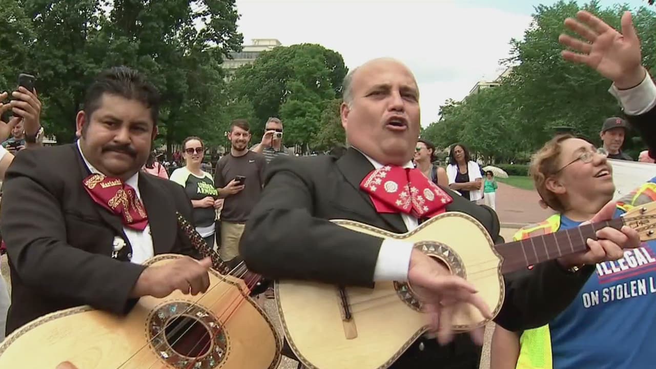 Con mariachis y un Trump de mentiras, piden el fin a la política de separación de familias