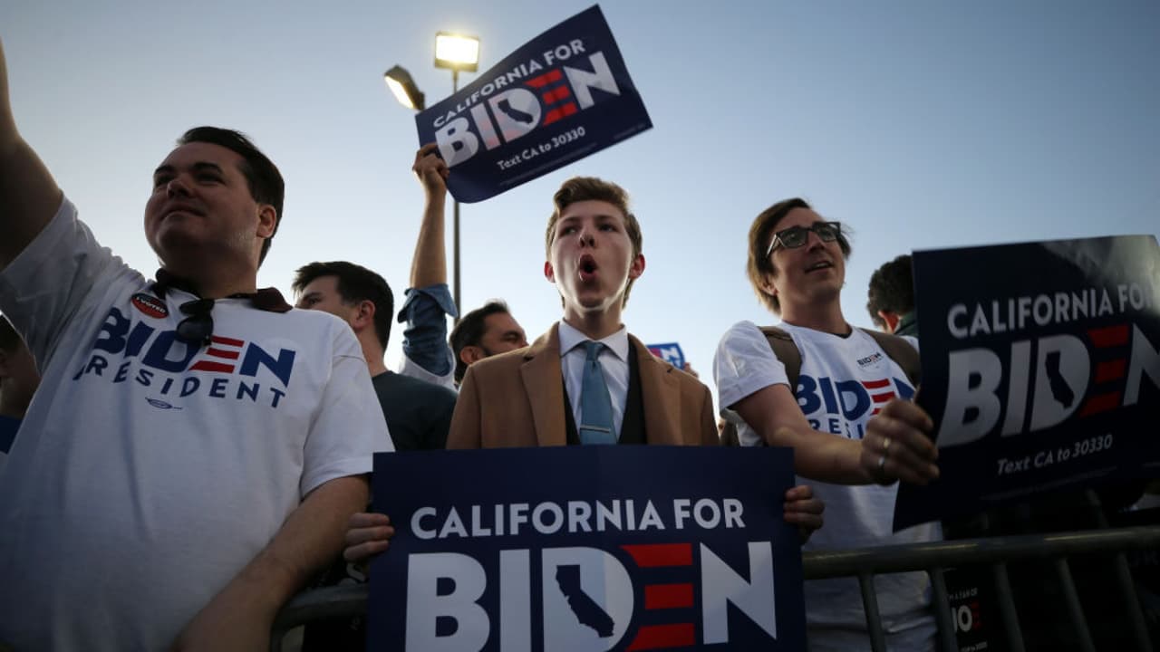 Con música, así esperan decenas de simpatizantes que Joe Biden dé su discurso en Los Ángeles