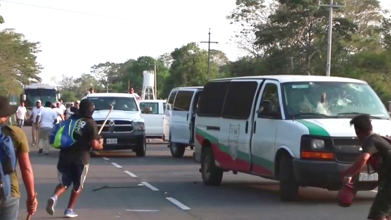 Cientos de centroamericanos se enfrentan con piedras a agentes migratorios para ingresar a México