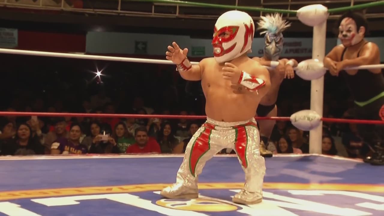 Con solo tres pies de altura, este joven luchador es capaz de volar en el cuadrilátero mexicano