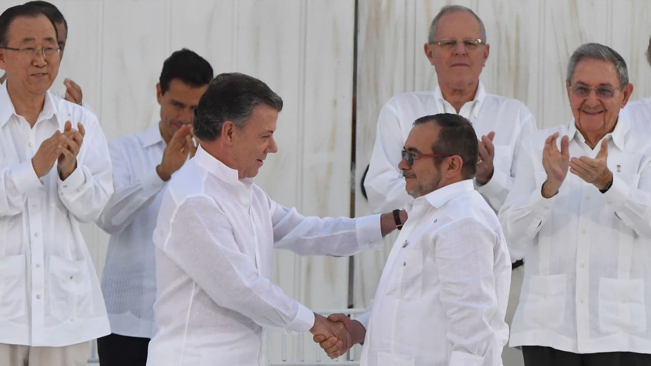 El Presidente Juan Manuel Santos en representación del gobierno colombiano y las FARCS firmaron hoy el final de 52 años de guerra en el país.