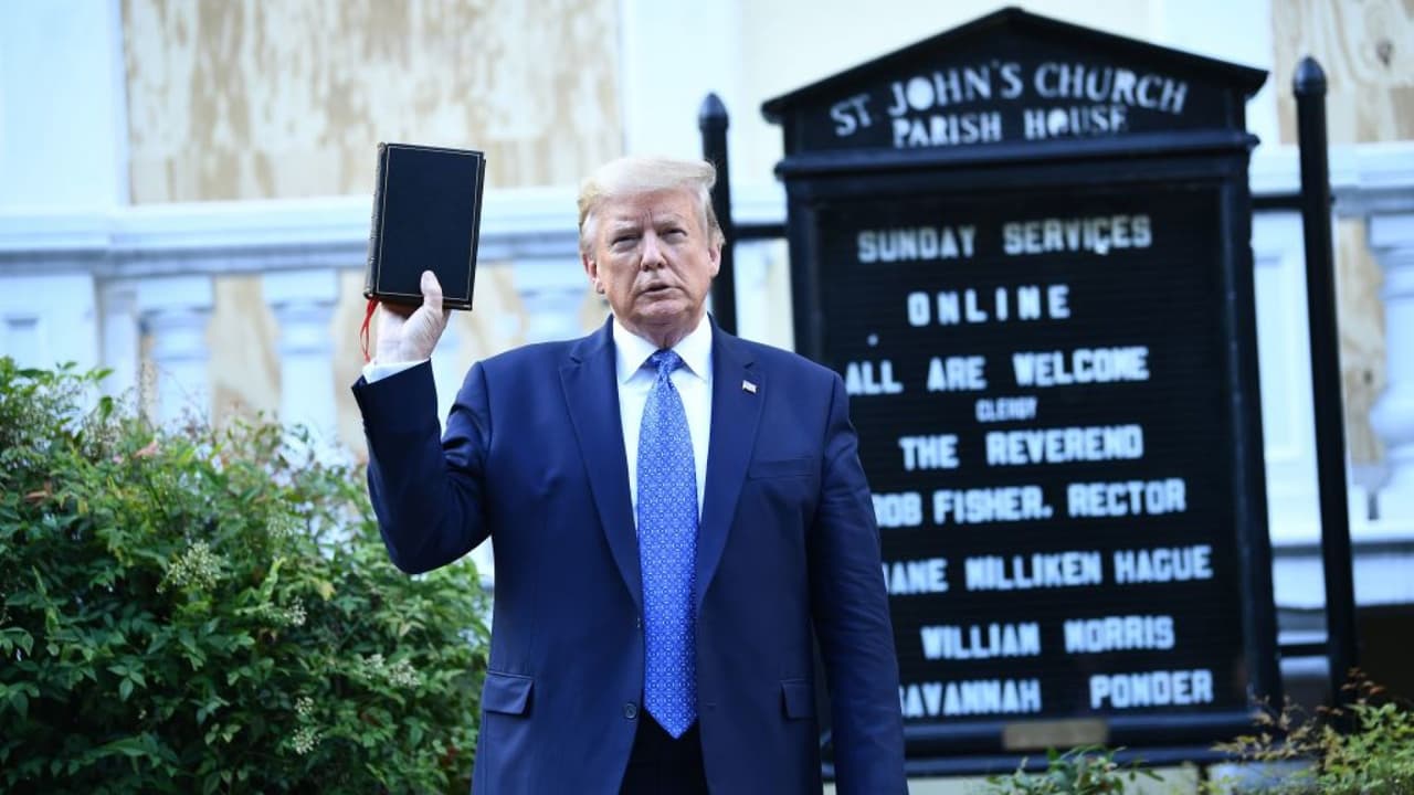 Con una biblia en las manos, Trump visita la iglesia que fue vandalizada durante las protestas