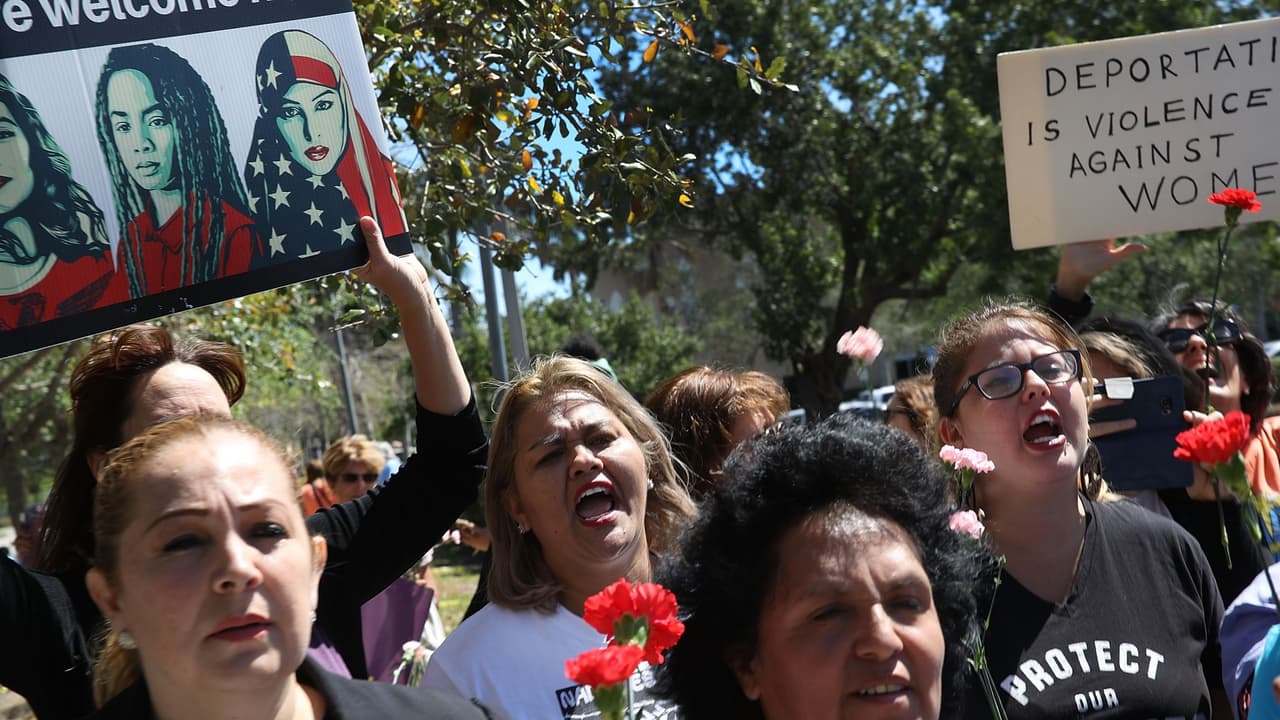 Un numeroso grupo de mujeres se dio cita en un Centro de Procesamiento de ICE, en Miramar, para participar en una marcha en la que se pidió igualdad de género y no criminalizar a las madres indocumentadas que, por diversas situaciones, han sido separadas de sus familias.
