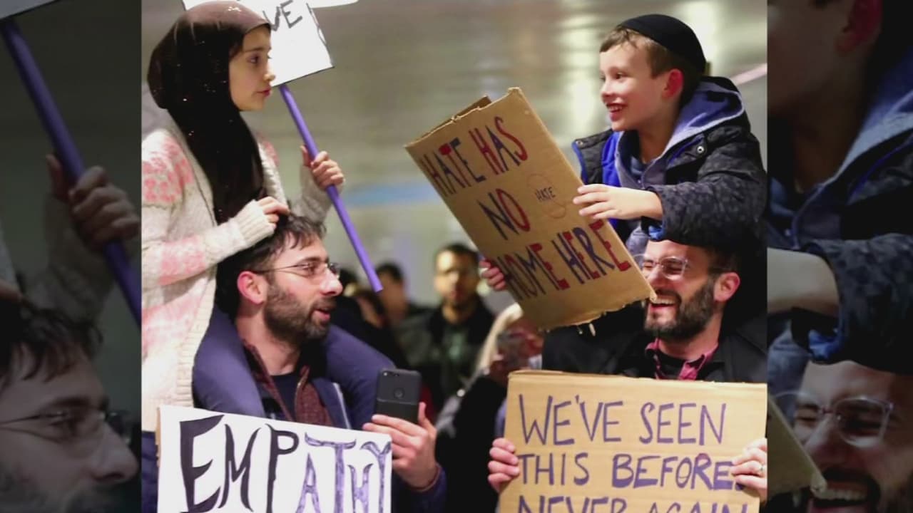 Conmoción por imagen de una familia musulmana y otra judía que se unen en protesta contra Trump