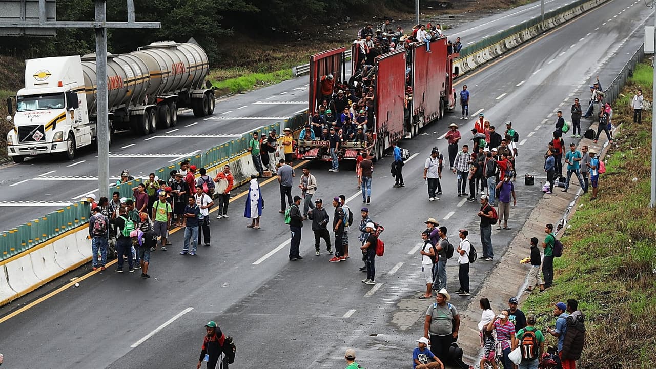 Corriendo el riesgo, migrantes de la caravana viajan en un camión abierto ante el cansancio por las largas caminatas