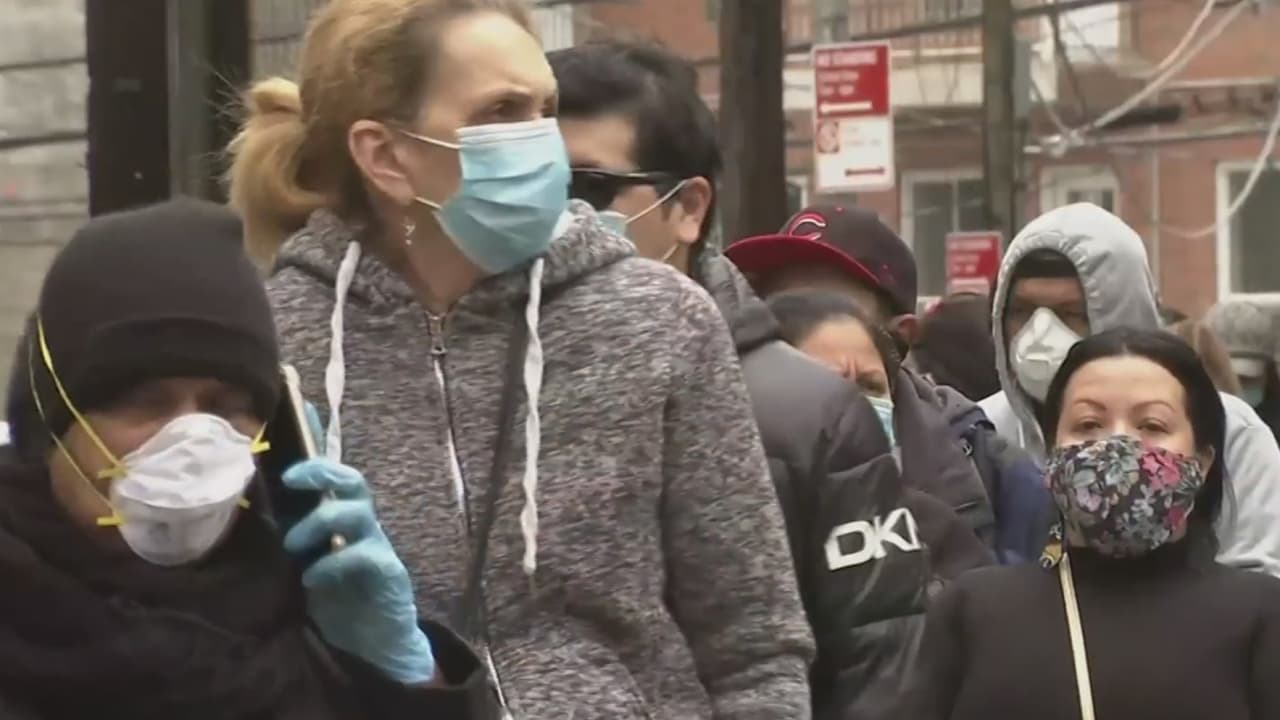Covid-19: Decenas de hispanos hacen filas en Queens para reclamar alimentos gratuitos