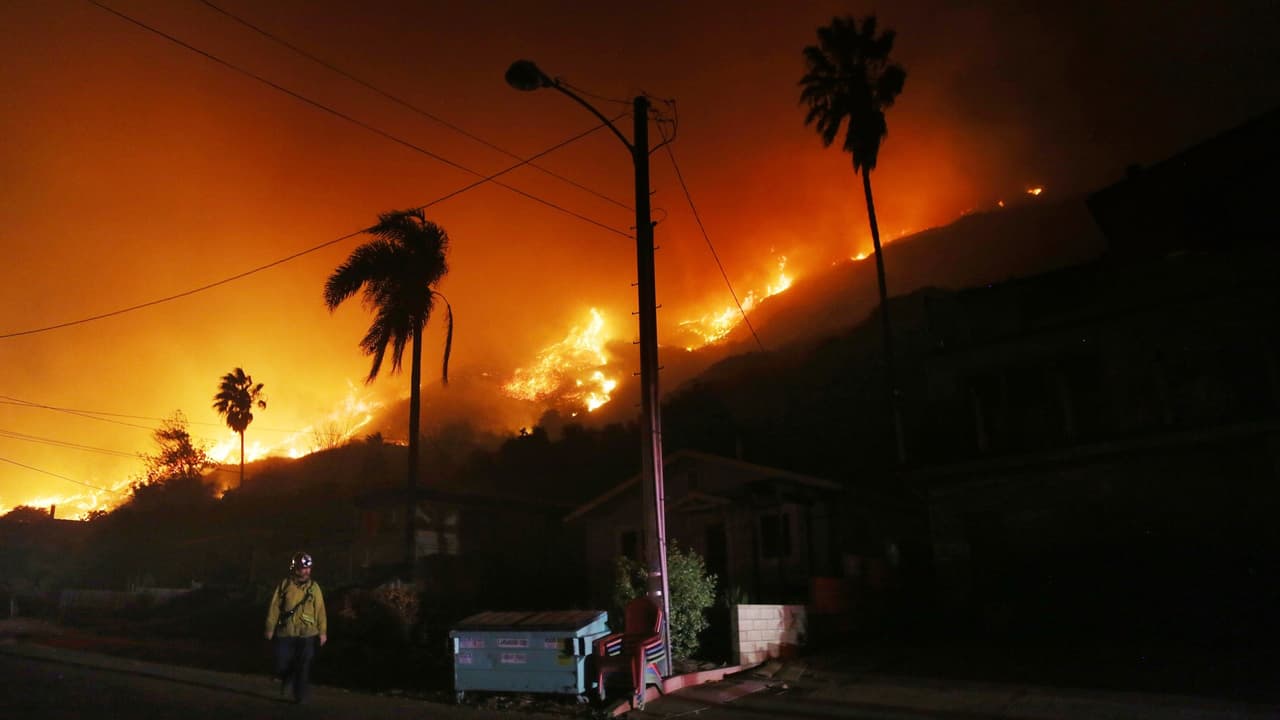 Miles de bomberos combaten los cuatro incendios forestales que arden fuera de control en el sur de California y que han obligado a la evacuación de más de 250,000 residentes. El combustible que alimenta las llamas proviene de los vientos de Santa Ana, lo que podría empeorar la situación este jueves ya que se pronostican ráfagas de 80 mph en algunas zonas.